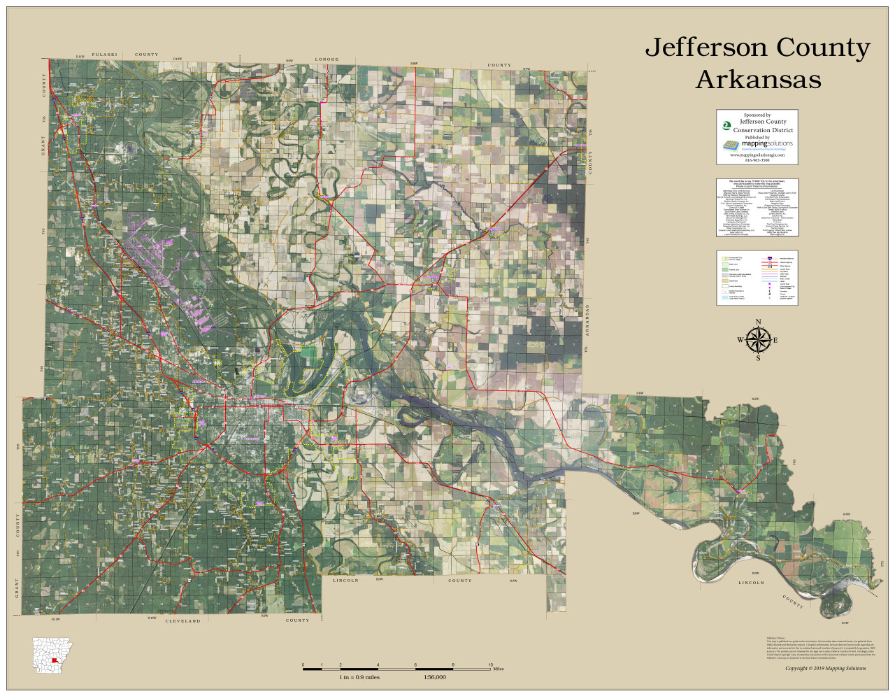 Jefferson County Arkansas 2023 Aerial Wall Map | Mapping Solutions