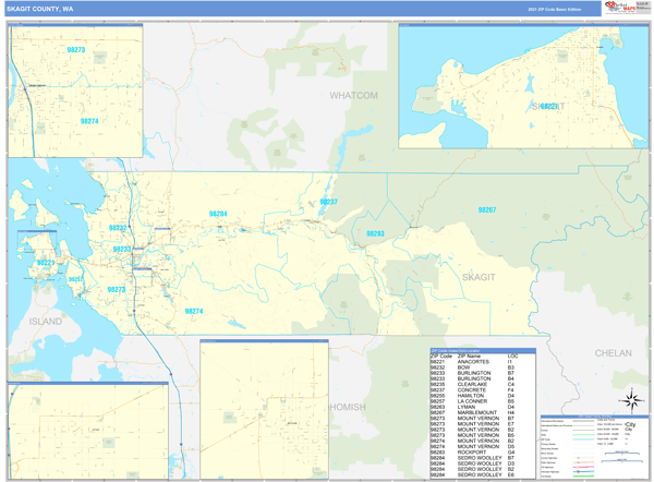 Skagit County, WA Zip Code Wall Map Premium