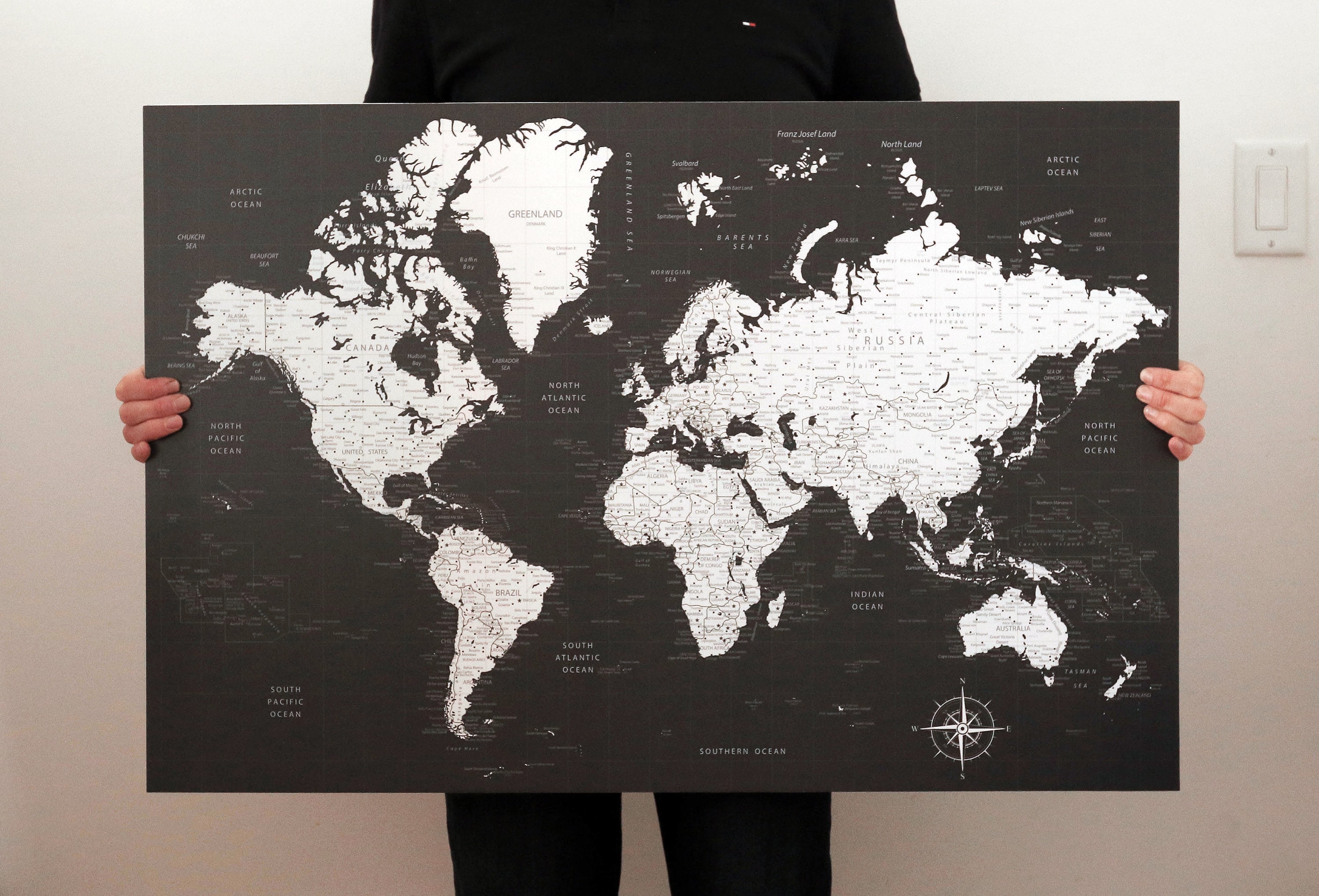 Large World Map Push Pin Executive Style 24×36 or 24×16 Customized